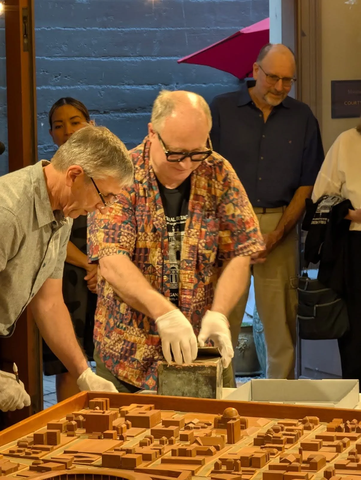 Summer Soirée Surprise: Norm Gholston, Preservation Programs Manager, with the contents of the time capsule, at the Architectural Heritage Center’s 2025 Summer Soirée.