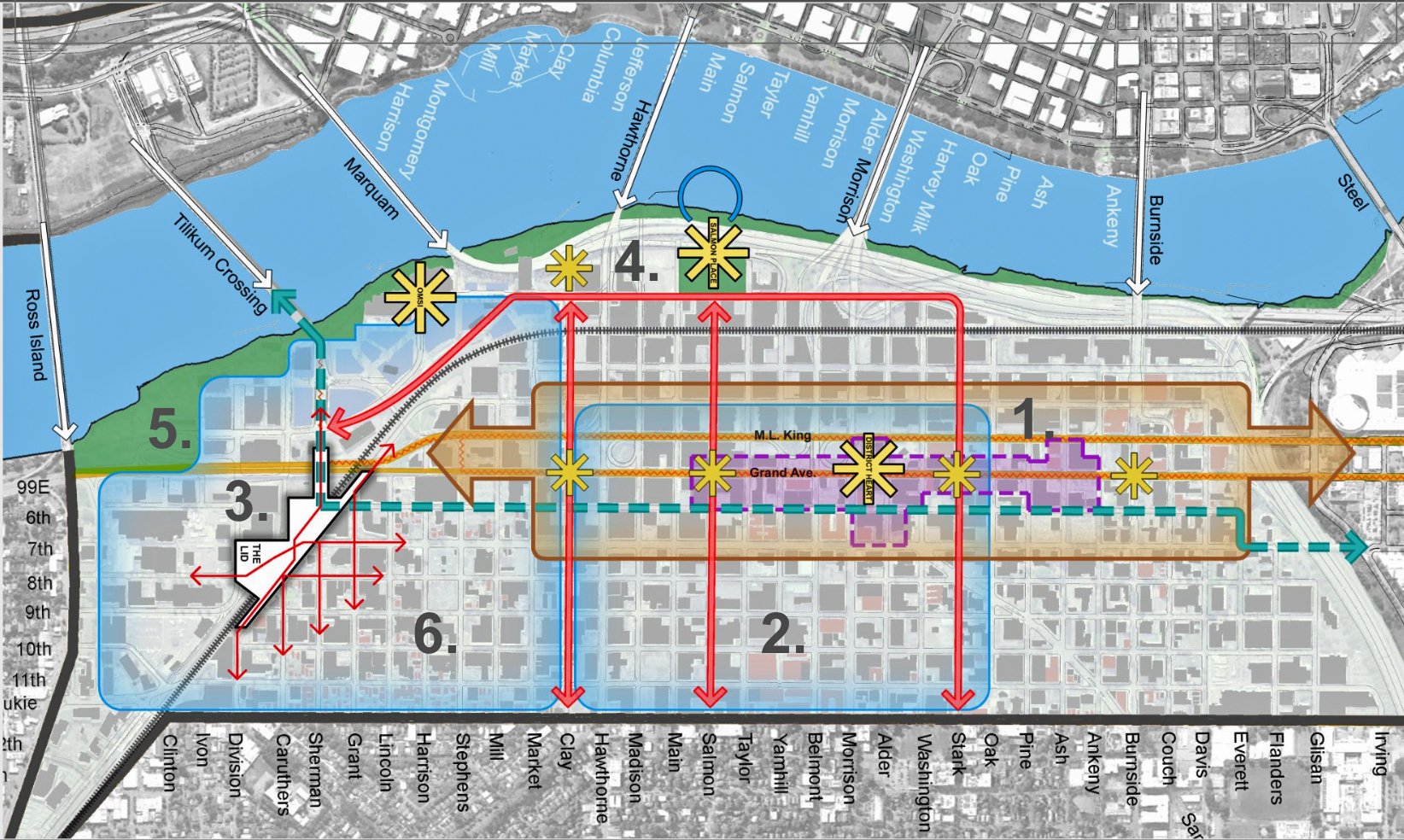 CHARRETTE PROCESS |A core working group, composed of design professionals, will create design concepts and proposals that are reviewed and commented on by stakeholders and the public. Professionals will work in groups assigned to targeted geographic areas, guided by a design leader. Key stakeholders, such as key district leaders and groups active in the study areas, will be invited to work with the core designers at specific times. The Charrette will build upon identified the Strengths, Weaknesses, Opportunities and Threats (SWOT Analysis), current plans, and new ideas for a full cultural, economic, and ecological revitalization of Portland’s Central City. Outcomes will generate inspirational design solutions and advisory recommendations including a proposed framework for a new 2050 Plan.